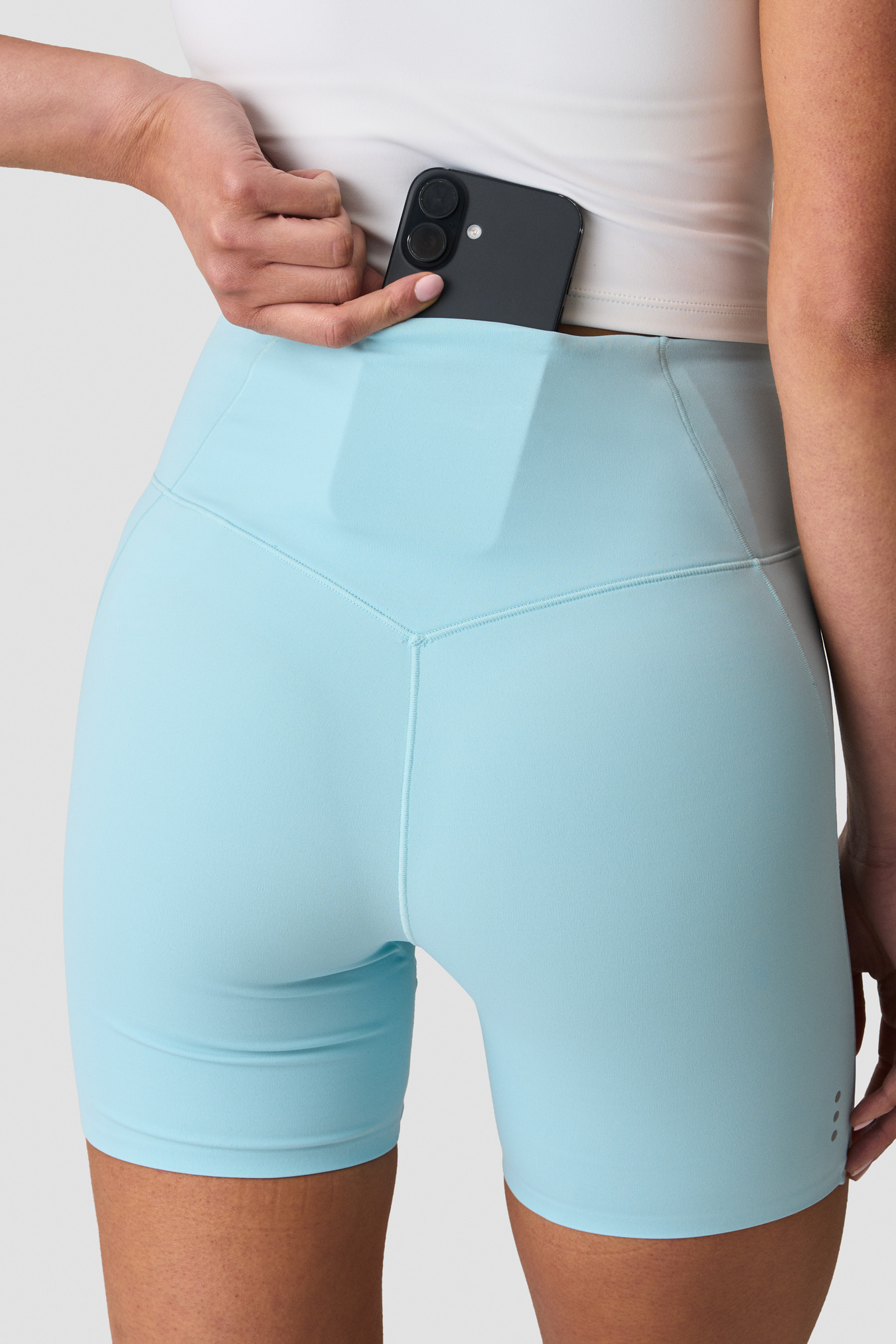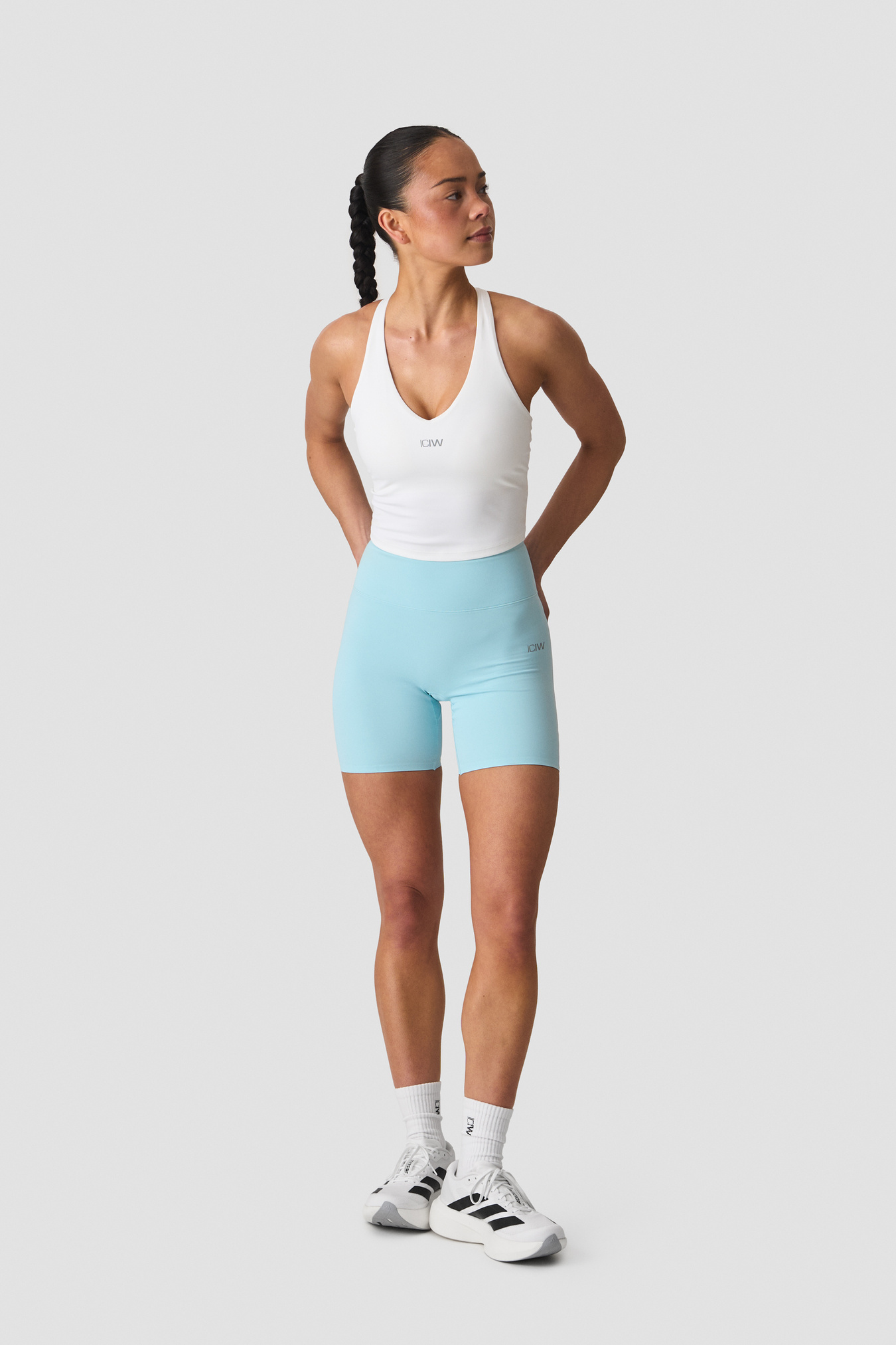 Shorts midi a vita alta progettati per la corsa e gli allenamenti ad alta intensità. Realizzati in tessuto interlock elasticizzato che allontana l'umidità per mantenerti asciutta e comoda. Il girovita è dotato di elastico interno e di power mesh di sostegno per una maggiore stabilità, con una forma a V sul retro che valorizza la silhouette. Le cuciture a punto scala garantiscono piena libertà di movimento, mentre i puntini riflettenti laterali e il logo ICIW riflettente migliorano la visibilità in condizioni di scarsa illuminazione. Una tasca invisibile all'interno del girovita posteriore mantiene al sicuro i piccoli oggetti essenziali. Interno gamba di circa 15 cm nella taglia S. Vestibilità aderente, effetto seconda pelle. 75% Poliammide, 25% Elastan.